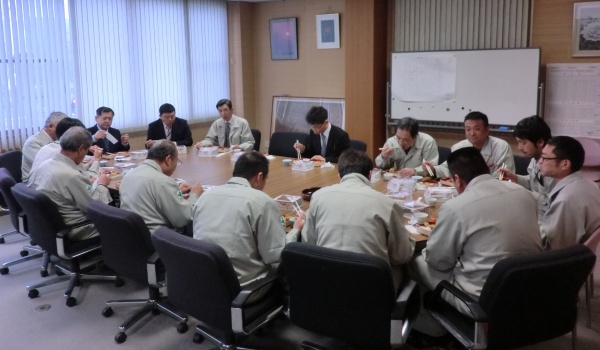 入社式後、ささやかではありますが歓迎会を兼ねて食事会を行いました。