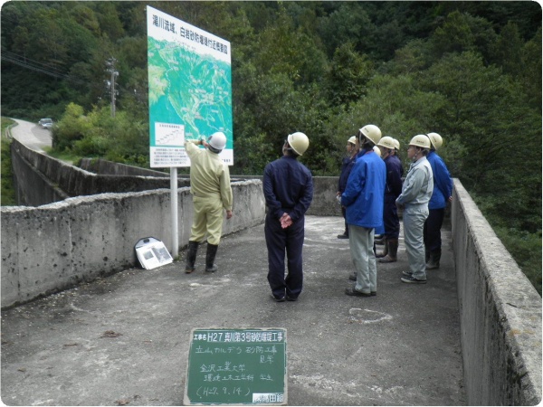 ふだんあまり目にすることがない砂防工事現場を見学し、実体験することで、建設業の魅力・建設業の役割を理解してもらい、一人でも多くの若者が建設業に携わって欲しい。と、願いを込め、現場見学会を行いました。