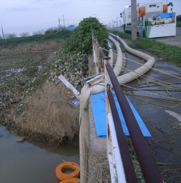 茨城県常総市を中心とする豪雨災害により、被災された皆さまに謹んでお見舞い申し上げると共に、一日も早い復旧を心よりお祈り申し上げます。 広域防災協定を締結している富山県建設業協会会員の建設会社がチームを組み、排水ポンプの設営・運転等の作業を24時間体制で実施しています。水が引かないと復旧作業も難しいため、二次災害に注意しながら作業を継続しています。