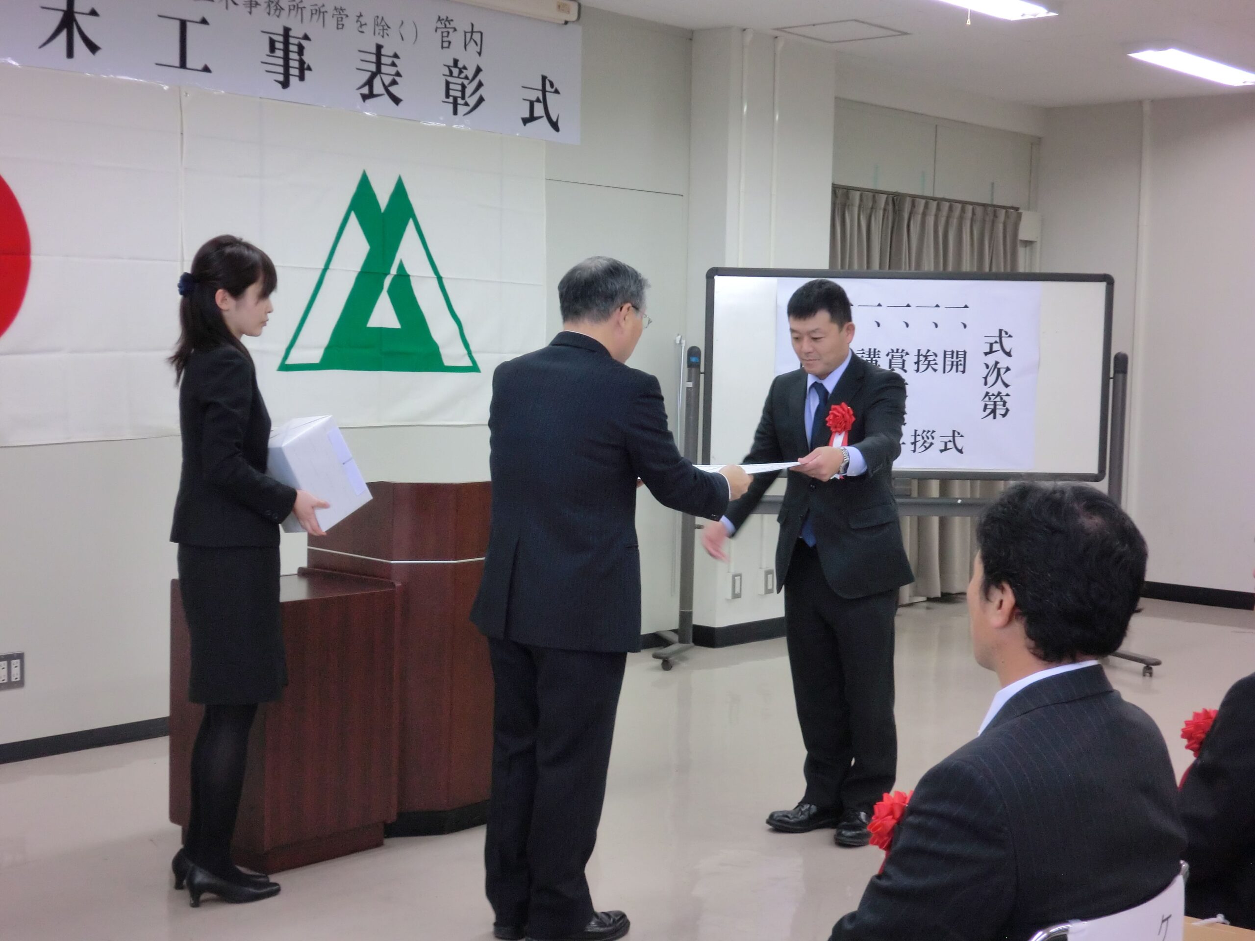 この工事は、高田組・辻建設・藤川建設 共同企業体で施工し、現場代理人・監理技術者として現場管理を行った鈴木章夫が、『現場代理人表彰』を受賞しました。