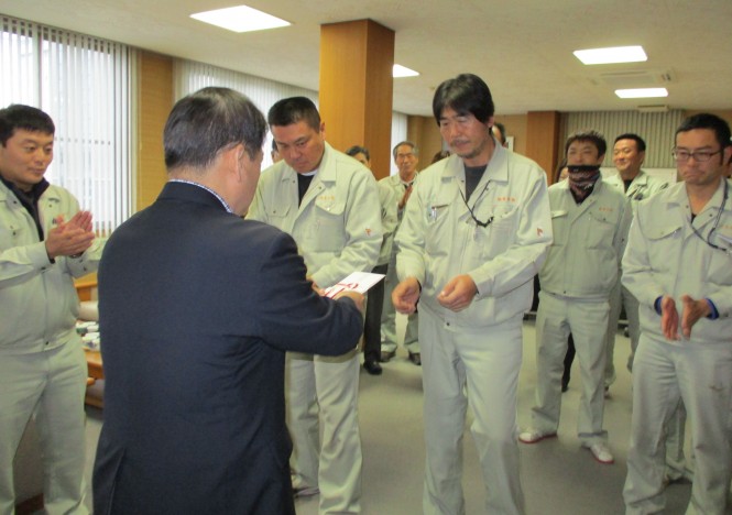 平成27年9月関東・東北豪雨 災害における災害支援にあたり、旺盛なる責任感をもって作業に尽力したことが功績とされ、 北陸地方整備局長から『災害支援功労者感謝状』の贈呈を受けました。