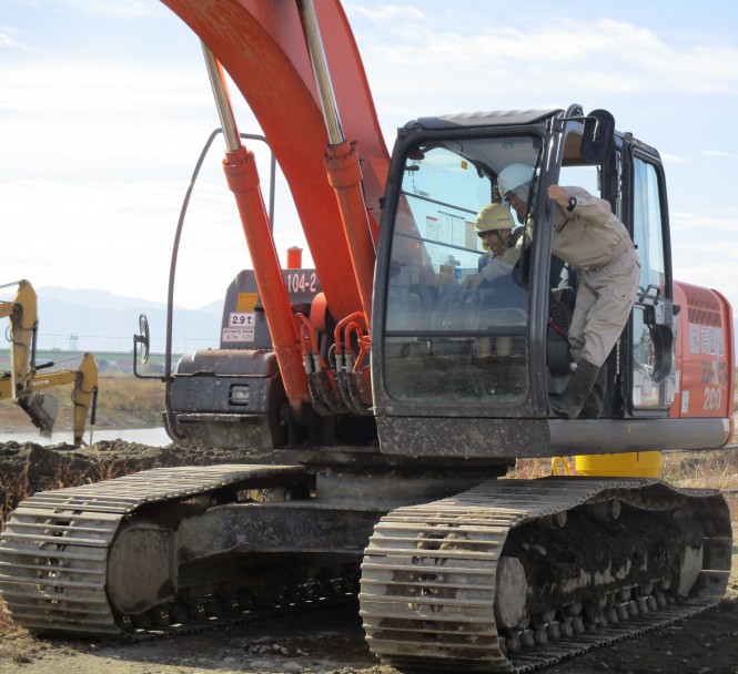 【重機操作体験】 アームの曲げ伸ばしや、旋回などの操縦を体験しました。