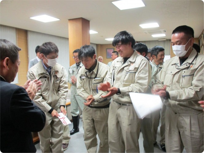 社内表彰(工事成績評定点優秀工事)を執り行いました。
