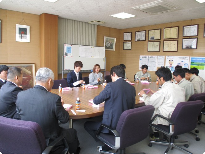 「全社員であなたを守り、育てます。安心して仕事に打ち込んで下さい。」と、社長が歓迎の挨拶を述べました。
