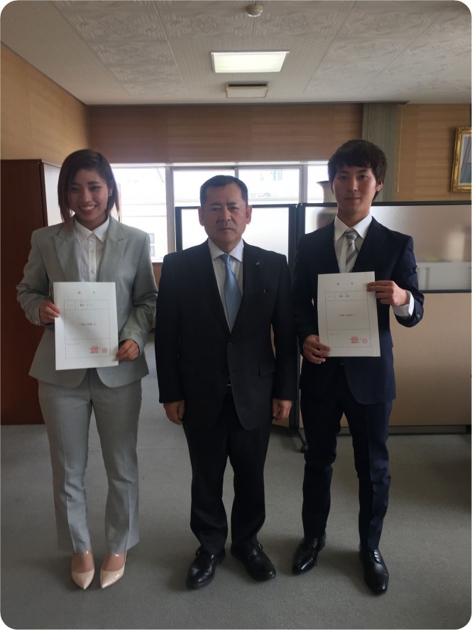 社長による辞令交付が行われ、新入社員を代表して奥野さんから答辞を受けました。