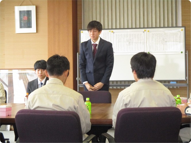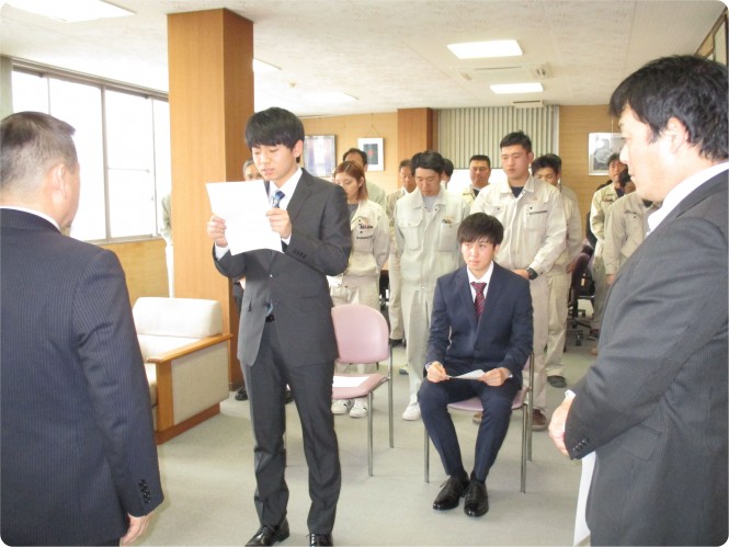 4月1日、入社式を執り行いました。今年度は工務部に2名、入社致しました。