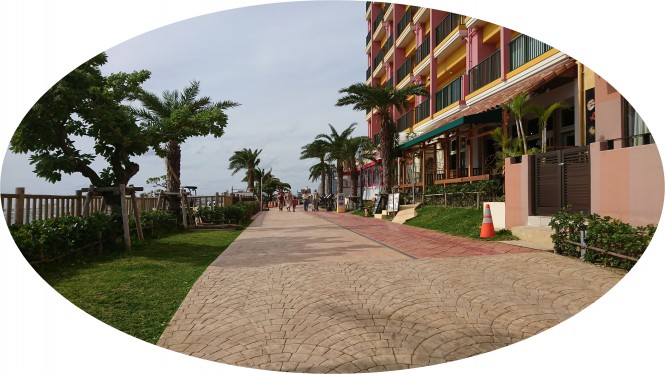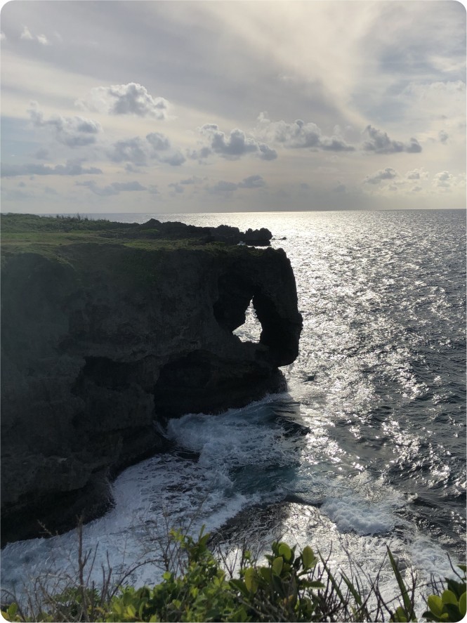 1日目は、旧海軍司令部壕を見学 ⇒ 宜野湾・アメリカンビレッジでショッピング ⇒ 景勝地・万座毛を見学 ⇒ 宿泊先の恩納村へ(ルネッサンスリゾートオキナワ)