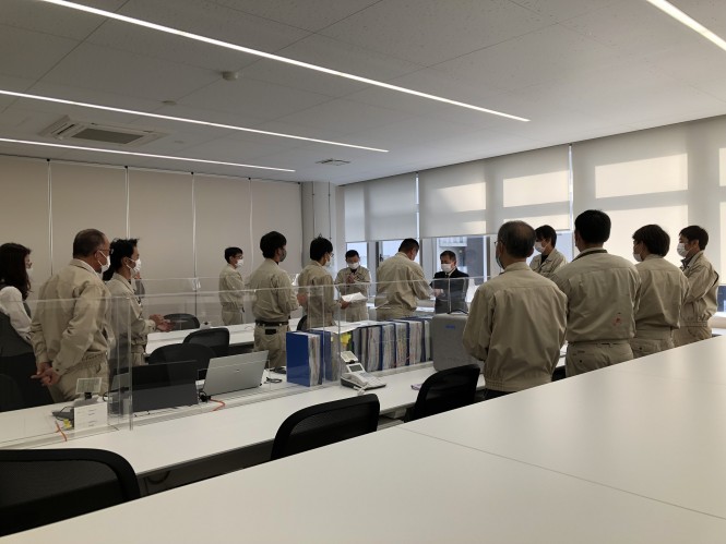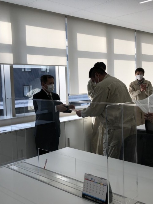 本日(令和 3年11月20日)、工事成績評定点が優秀であった工事に対して、社内表彰を執り行いました。