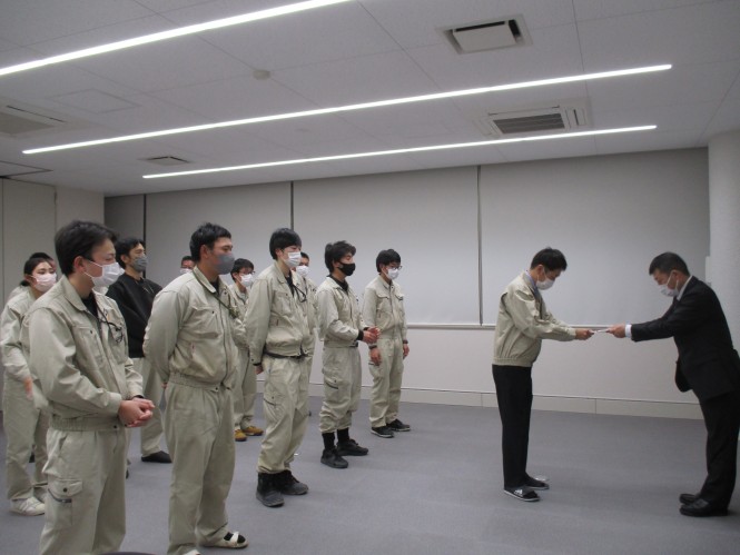 本日(令和 4年12月28日)、工事成績評定点が優秀であった工事に対して、社内表彰を執り行いました。