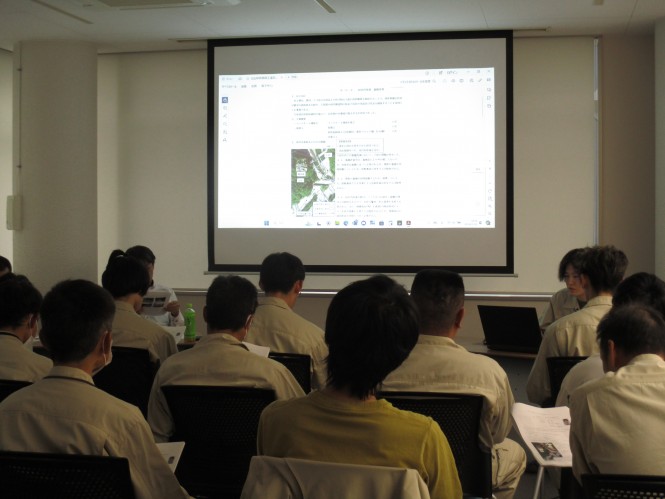 工務部の竹内さんより、「河川内作業における安全管理について」工事経験の発表がありました。