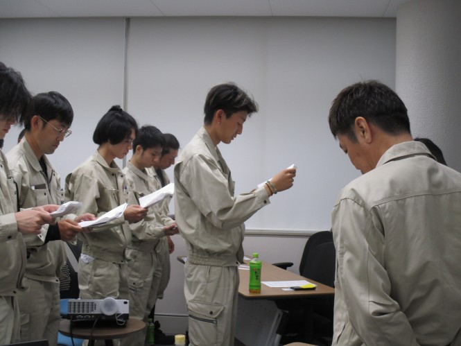 最後に、社員を代表して工務部の菓子さんが「安全宣言」と「安全スローガン」を宣誓し、全員で無事故無災害を誓いました。