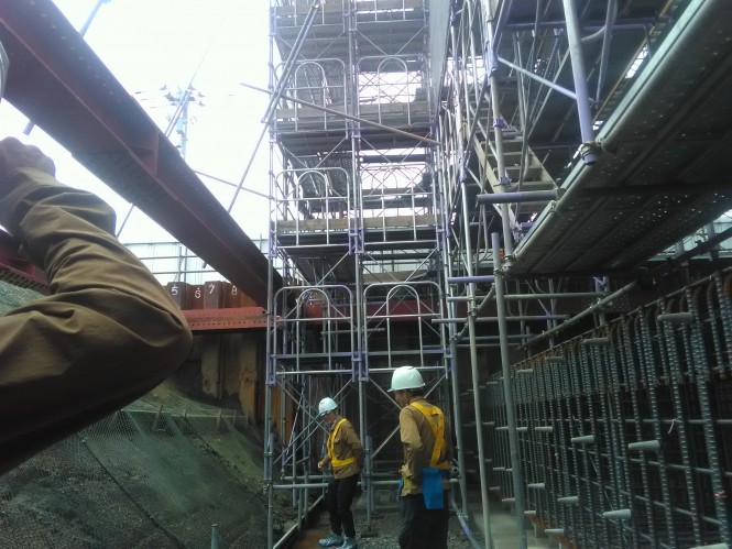 見上げるくらい大きな足場で、これがいつか一つの橋になるんだなと思うとすごく感激しました。
