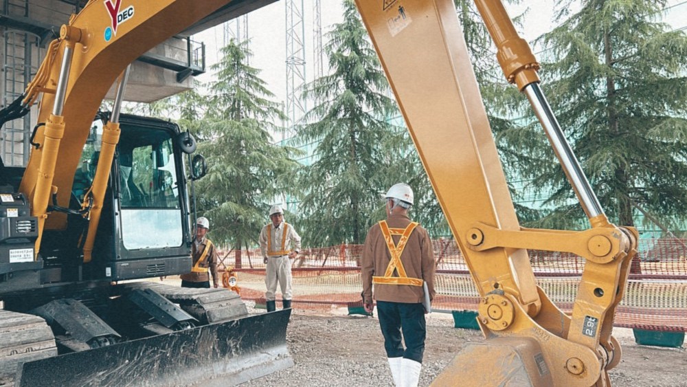 工事が始まったばかりで、バックホウなどの重機はまだ動かしていませんでした!