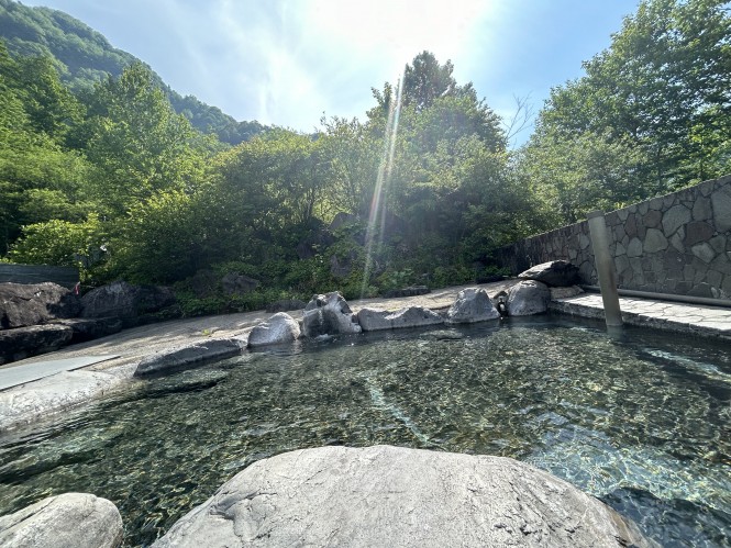 ここは本物の温泉が湧き出ていて、自然に囲まれながら温泉に浸かることができるそうです。羨ましいです。