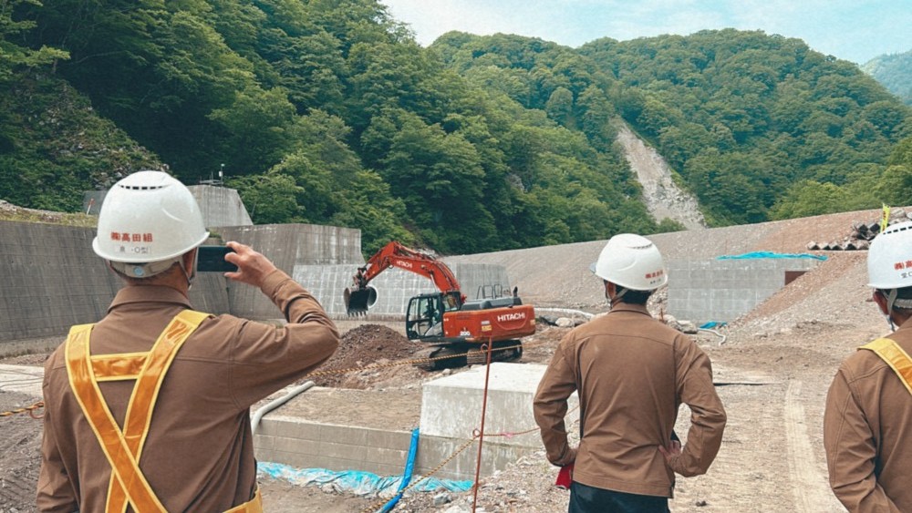 この現場では、砂防工事をするために、砂防までつながる道路をつくる工事をしています。
