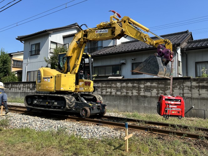 この日一番驚いたことは、線路の上をトラックやバックホウが走っていたことです!