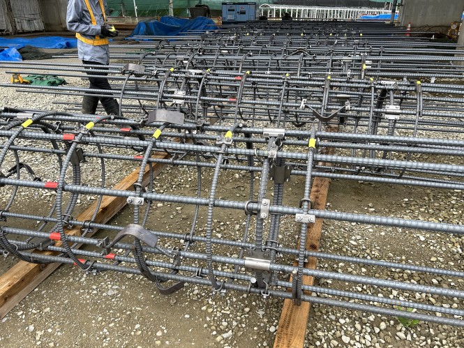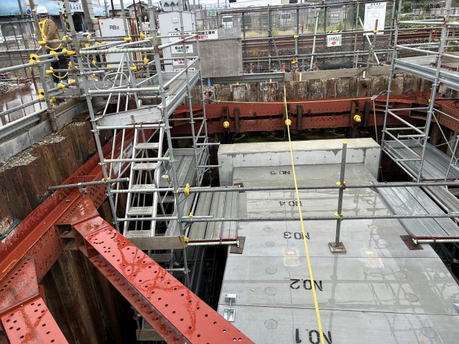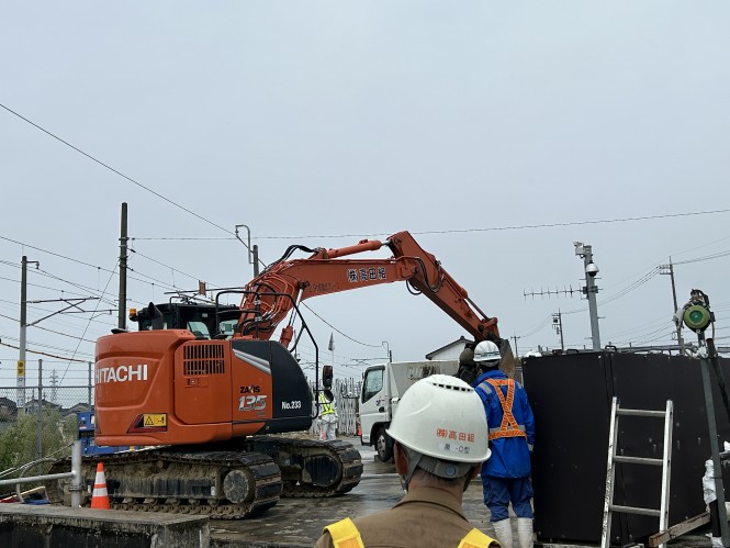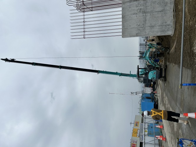 コンクリートの埋め立てが終わり、支えの柱を撤去する作業をしていました。