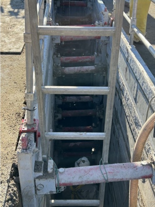 重機の近くまで行くとこのように3mほどの深い穴があり、作業員の方が中で作業していました。