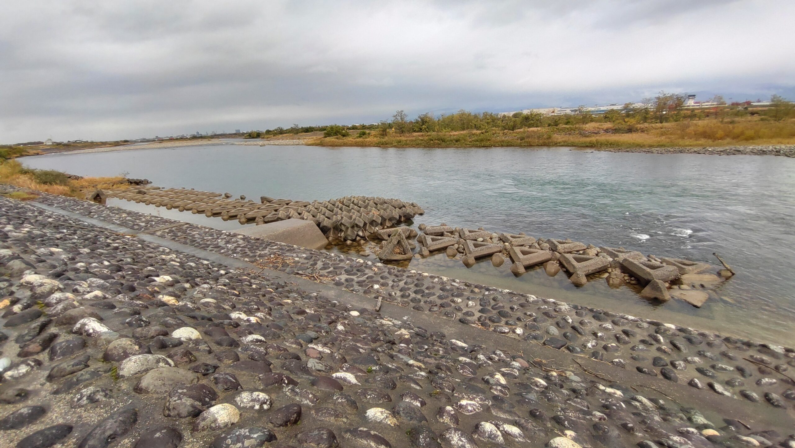 話を聞いて驚いたのですが、工事を行うためにこちら側の川の水をすべて向こう側へ流すのだそうです。