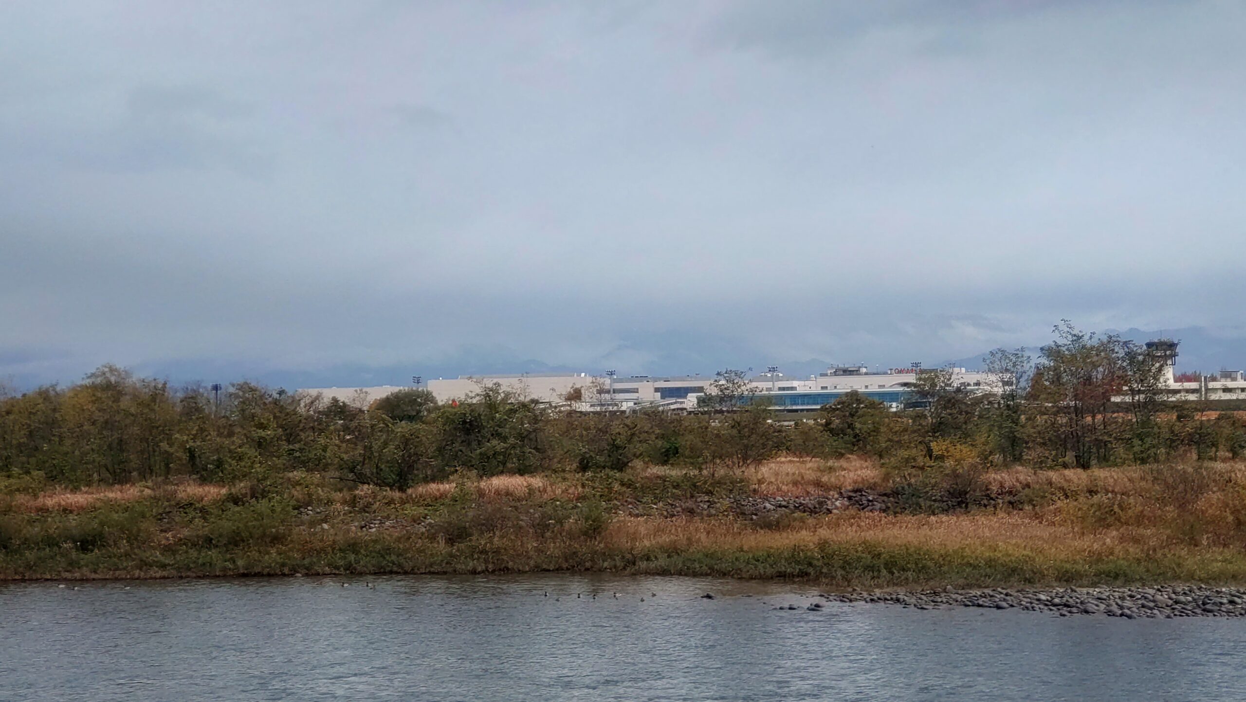 ちょうど対岸は富山空港です。飛行機の離発着を望むには抜群のロケーション。